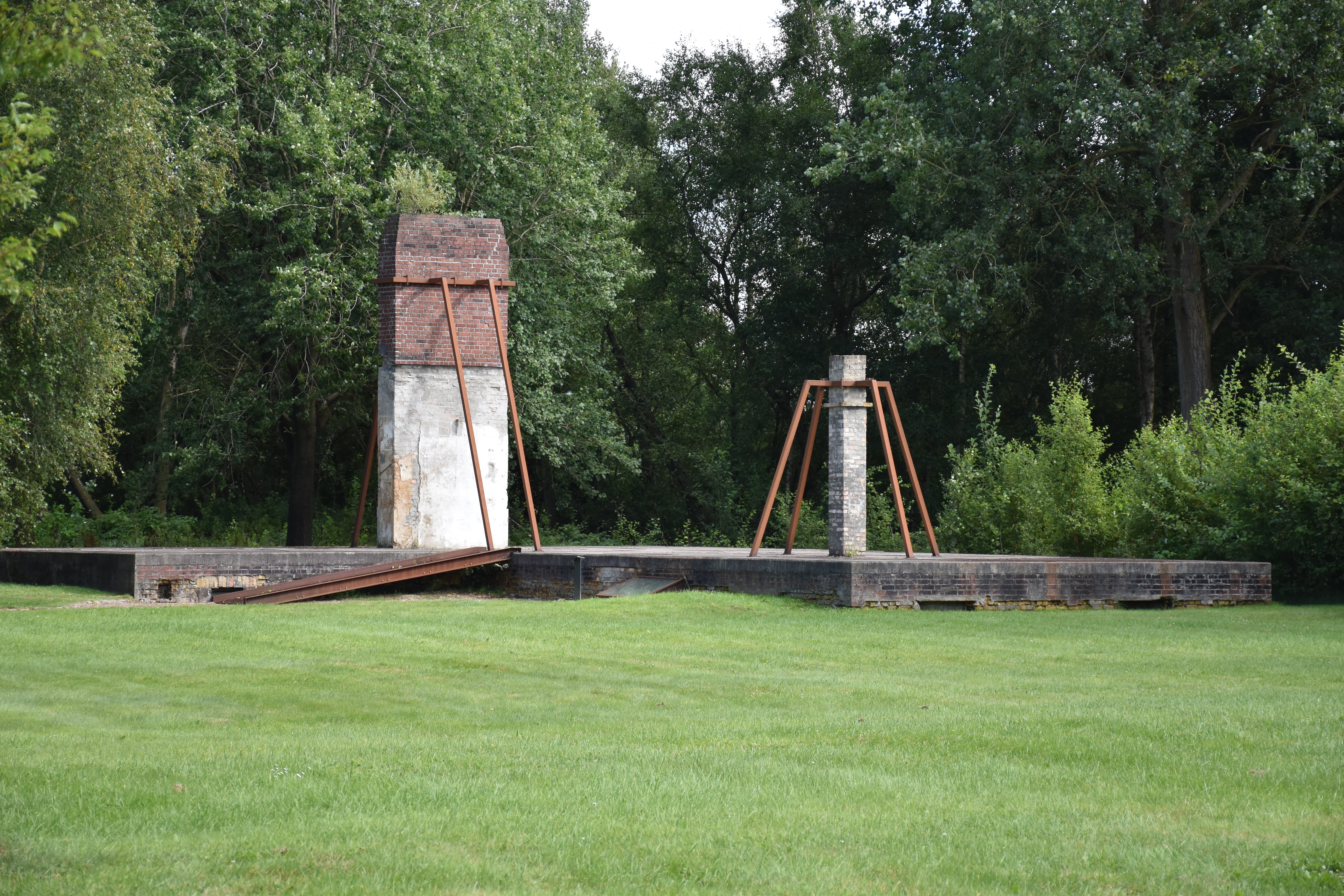 Het kamp dat niet lang heeft bestaan en met name bedoeld was als huisvesting voor de (Nederlandse) dwangarbeiders die aan de nabijgeloegen kust verdedigingswerken (de zgn. Friesenwal) moesten graven/bouwen, ligt er prachtig gestileerd bij. Van één oorspronkelijk bouwwerk, de keuken, rest een onttakelde ruïne: als een blijvende aanklacht.
